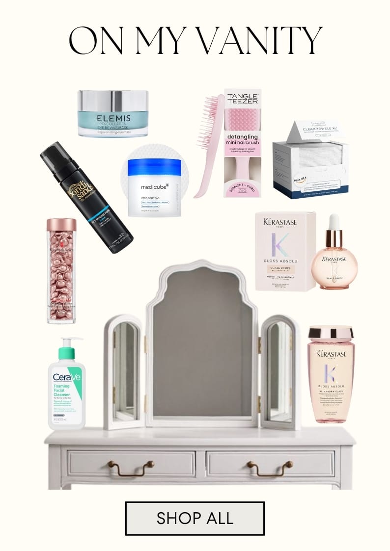 My Amazon Prime Day picks from my vanity! These are the products I reach for constantly and they’re all included in the sale, which makes it the perfect time to stock up. The Bondi Sands Self Tanning Foam gives the most natural bronzed glow, and the Kérastase Gloss Absolu Shampoo and Hair Gloss Oil Drops leave my hair so shiny and soft. I’m obsessed with all things ELEMIS, especially the Pro-Collagen eye range, it’s genuinely saved my tired mum eyes! The Elizabeth Arden Retinol + HPR Capsules are another must, so gentle but give my skin that fresh, glowy look. The Tangle Teezer Ultimate Styler is my go-to for sleek hair days, and the Clean Skin Club Towels are a total game changer for skincare, super hygienic and great for removing makeup. I also love the Medicube Zero Pore Pads for keeping my skin smooth and clear, and the Cerave Foaming Cleanser is my everyday cleanser. So many amazing deals on products I use daily!