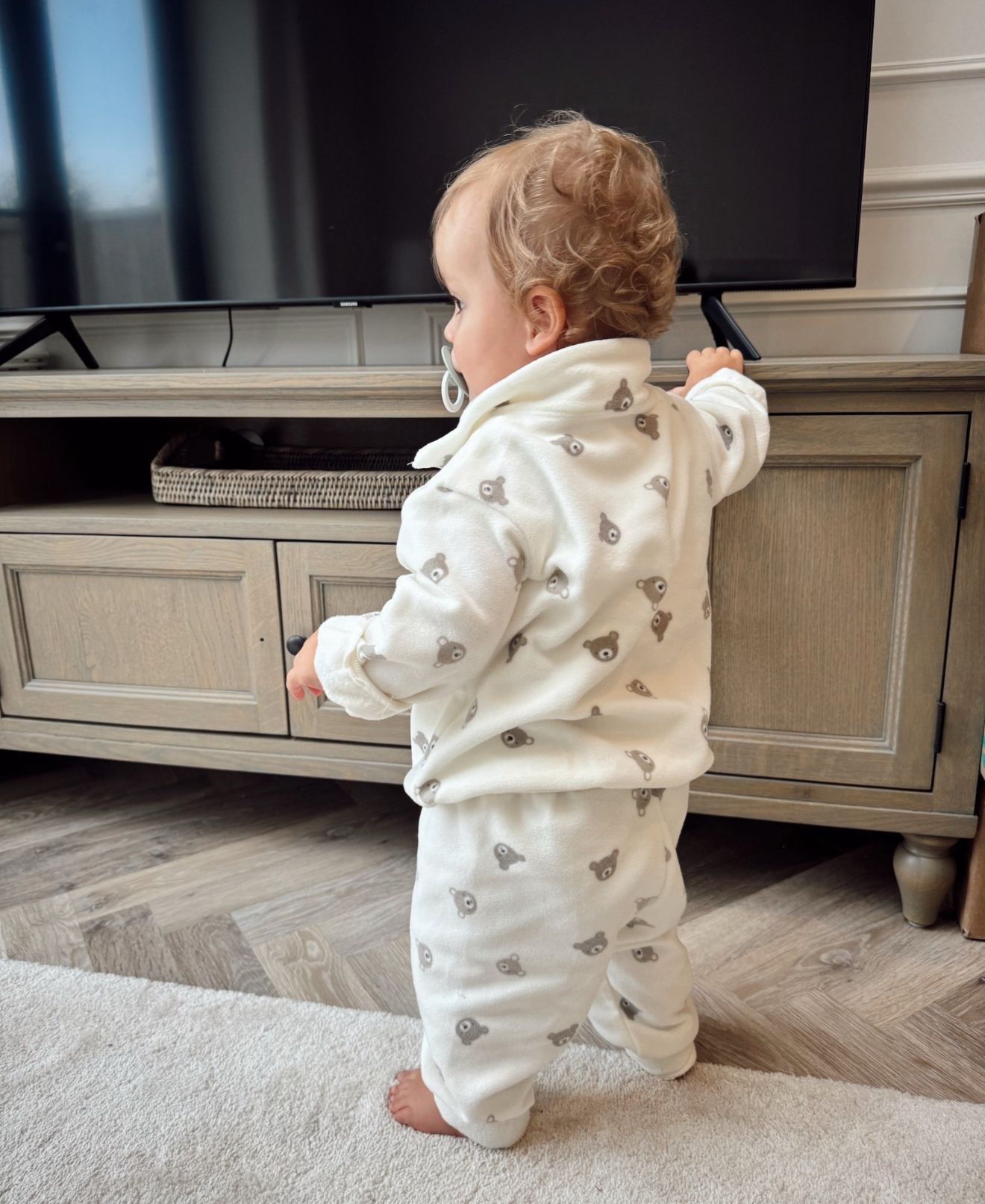 Lately I’ve been obsessed with these autumn baby bits for Monty — everything is just too cute this season! The checkered green trousers and coat set might be my favorite; it’s adorable and keeps him so warm on chilly days. I’ve also been loving this fleece teddy bear set — it’s super soft and cosy. The striped trousers from Zara Kids are perfect for playtime, comfy but still stylish, and this fleece beige set is another must-have — it’s the sweetest outfit and perfect for family photos over the holidays!